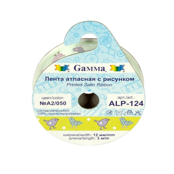 Атласная лента с нанесенным печатным рисунком. Применяется в качестве декоративной отделки одежды, при создании открыток, альбомов в скрапбукинге.