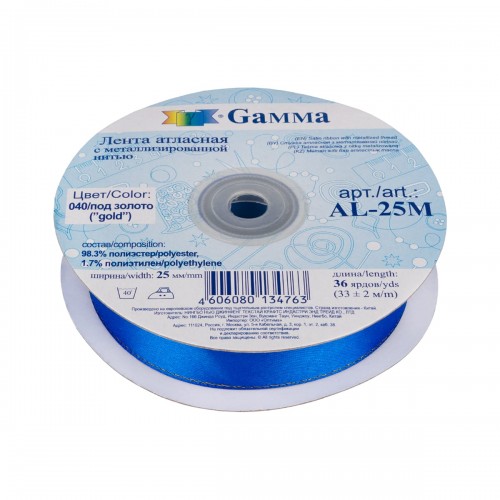 Лента атласная 25 мм "Gamma" AL-25M двухстор. с металл. нитью 33 м ± 2 м №040 василёк/золото