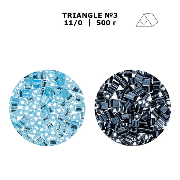 Triangle имеет внутреннее отверстие в виде треугольника, благодаря чему бисер легко ложится в определенном направлении в готовом изделии. Внешняя форма также представляет треугольник, что позволяет готовому изделию сверкать, отражая падающий на него свет.