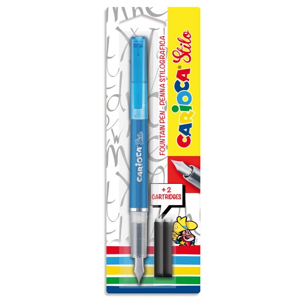 Carioca" Stilo 42303 Толщина линии - 1 мм. Набор:перьевая ручка + 2 сменных картриджа с чернилами. Перьевая ручка высокого качества, картридж с синими чернилами. Цвет корпуса представлен в трёх цветах
