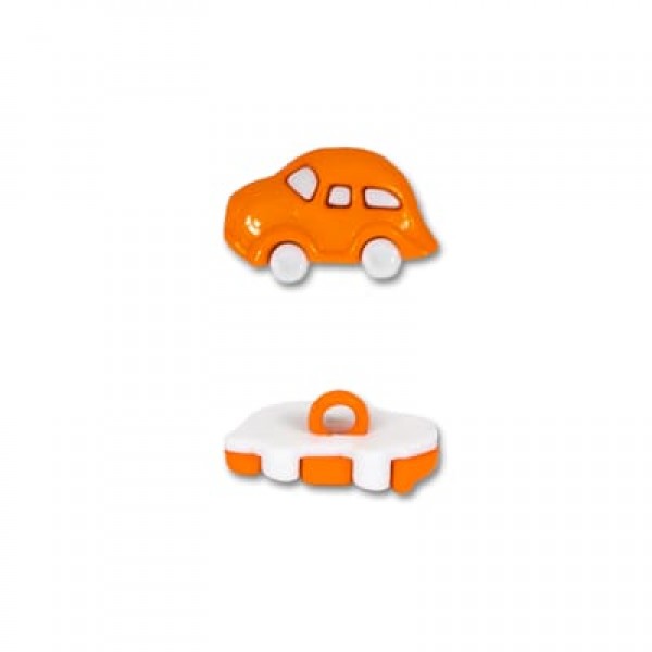 В виде "автомобиля". Пуговица состоит из двух частей.