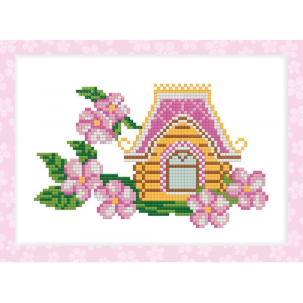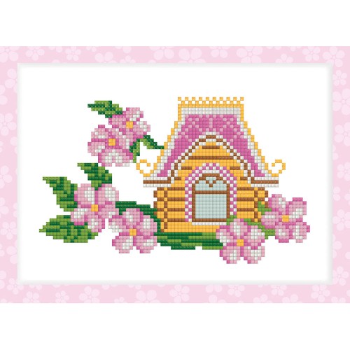 Кристальная (алмазная) мозаика "ФРЕЯ" ALVS-024 мини-картина "Домик с цветами 19.5 х 14 см