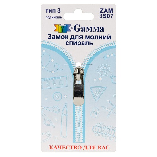 Gamma" ZAM 3S07 замок к молнии спираль т. 3 замок-автомат 1 шт черный никель