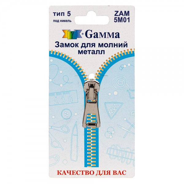 Gamma" ZAM 5M01 замок к молнии металл т. 5 замок-автомат 1 шт никель
