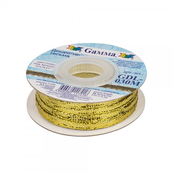 Gamma" ГДЛ-030М (GDL-030M) тесьма отделочная 3.5 мм 33 м ± 0.5 м под серебро/"silver