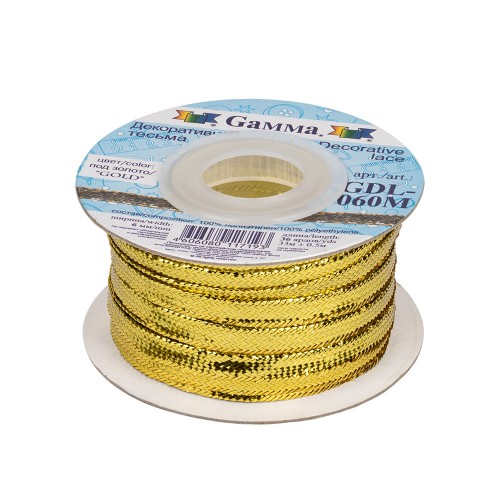 Gamma" ГДЛ-060М (GDL-060M) тесьма отделочная 6 мм ± 5 мм 33 м ± 0.5 м под золото/"gold