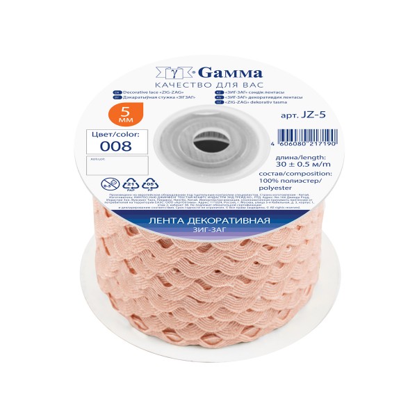 Gamma" ЖЗ-5 (JZ-5) лента декоративная "ЗИГ-ЗАГ №018 св.серый