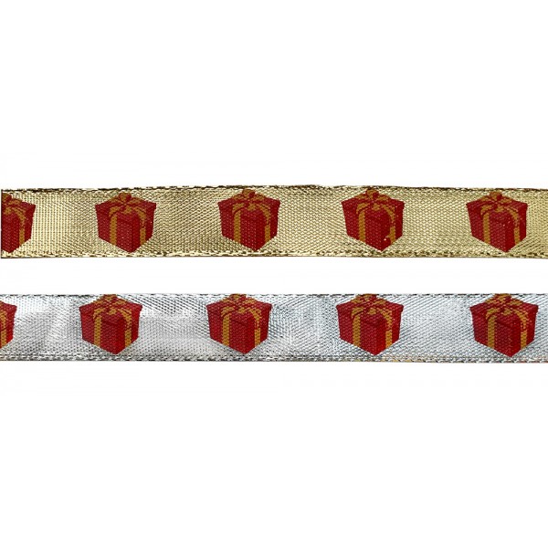 Металлизированная лента c новогодним рисунком,где нанесение рисунка - печать.