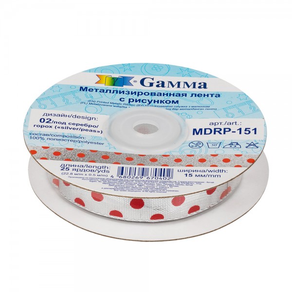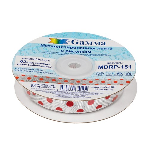 Gamma" МДРП-151 (MDRP-151) лента металлизированная 15 мм 22.8 м ± 0.5 м 03 под серебро/снежинки/"silver