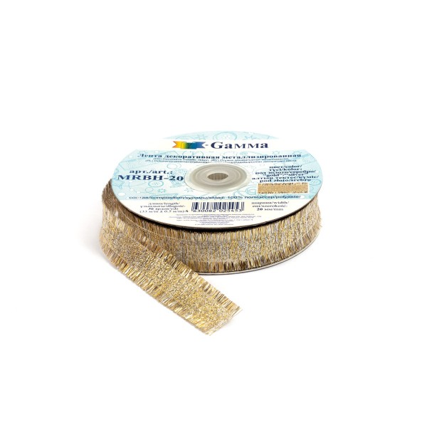 Gamma" МРВН-20 (MRBH-20) лента металлизированная с бахромой 20 мм 33 м ± 0.5 м под золото/"gold