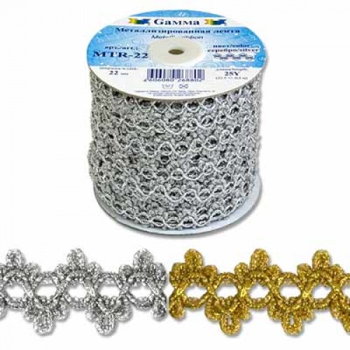 Gamma" МТР-22 (MTR-22) тесьма декоративная 22 мм 22.5 м ± 0.5 м под серебро