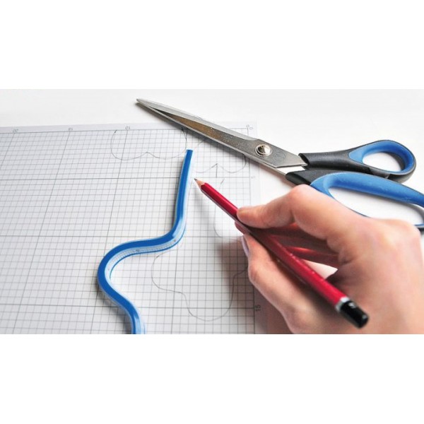 Лекало из пластика. Удобно в работе, поскольку принимает любую форму для черчения кривых и фиксируется в нужном положении.