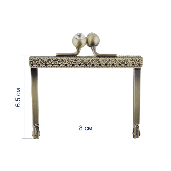 Фермуар - металлическая застёжка-рамка для кошельков, ридикюлей, сумочек, косметичек. Различные формы и размеры фермуаров позволяют создавать самые разнообразные модели: кошельки, вместительные сумки, косметички, очечники, сумки-ридикюли, сумочки из бисера, вязаные сумки, клатчи и тд. Небольшой и элегантный фермуар имеет специальные отверстия для привязывания изделия к сумочке, а также украшен прозрачными камнями на застежках. Фермуар произведен из качественных сплавов металлов, является прочным, имеет покрытие защищающее от ржавчины.