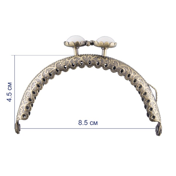 Фермуар - металлическая застёжка-рамка для кошельков, ридикюлей, сумочек, косметичек. Различные формы и размеры фермуаров позволяют создавать самые разнообразные модели: кошельки, вместительные сумки, косметички, очечники, сумки-ридикюли, сумочки из бисера, вязаные сумки, клатчи и тд. Небольшой и элегантный фермуар имеет специальные отверстия для привязывания изделия к сумочке, а также украшен оригинальными камнями на застежках. Фермуар произведен из качественных сплавов металлов, является прочным, имеет покрытие защищающее от ржавчины.