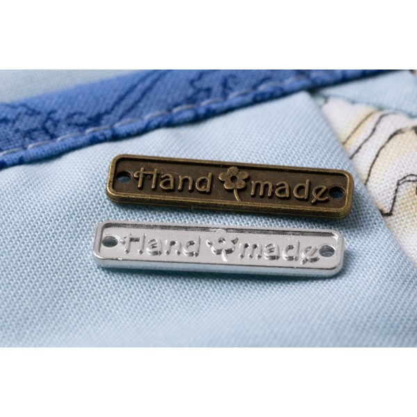 С помощью оригинальной нашивки вы сможете добавить уникальности изделию ручной работы или украсить старую и любимую вещь, будь то одежда или обувь, даже сумка или рюкзак. Небольшие и аккуратные бирки легко пришиваются с помощью отверстий к любому предмету одежды и делают его более привлекательным и стильным. Нашивки изготовлены из качественных сплавов металлов и имеют блестящую поверхность, а также классическую надпись. В ассортименте различные дизайны, формы, размеры, а также цвета под никель, под черный никель или под золото на выбор. Нашивка поможет сделать вашу одежду особенной.
