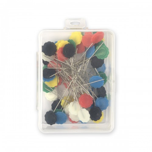Булавки для простёгивания /квилтинга_ GAMMA PHK-30 с декоративными цветными головками в форме "цветка". Предназначены для точного соединения деталей, ровно совмещают швы при сшивании на швейной машине.
