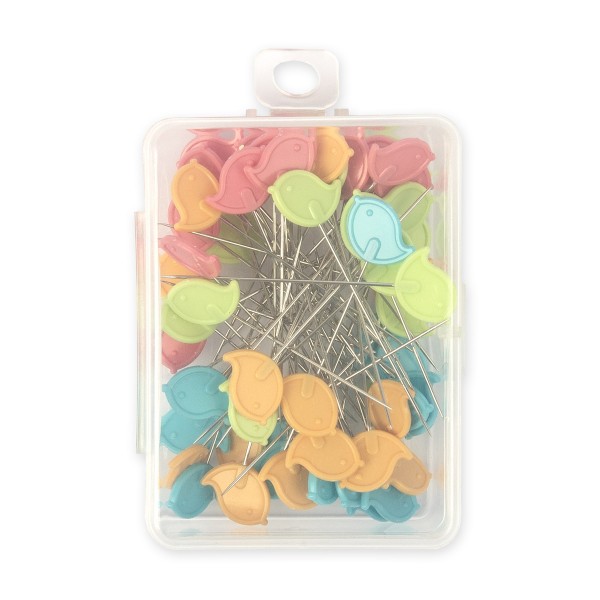 Булавки для простёгивания /квилтинга/ GAMMA PHK-10 с декоративными цветными головками в форме "птички". Предназначены для точного соединения деталей, ровно совмещают швы при сшивании на швейной машине.