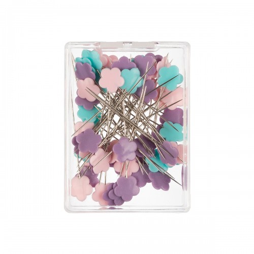 Булавки для простёгивания /квилтинга/ GAMMA PHP-20 с декоративными цветными головками в форме "цветка". Предназначены для точного соединения деталей, ровно совмещают швы при сшивании на швейной машине.