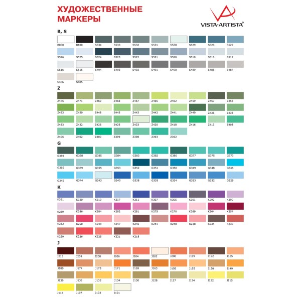 Палитра маркеров включает 168 цветов - от пастельных до самых ярких .
