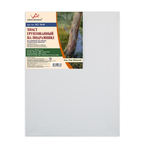 Холст - это идеальная основа для художественного творчества. Холст грунтованный на подрамнике "VISTA-ARTISTA" представляет собой проклеенную и хорошо загрунтованную ткань, натянутую на деревянный подрамник. Продукт используется для живописи масляными и акриловыми красками. Состав холста - 100\% хлопок. Плотность - 380 г/м2. Покрытие - акриловый грунт. Срок годности не ограничен. Толщина подрамника 1.7х3.8 см