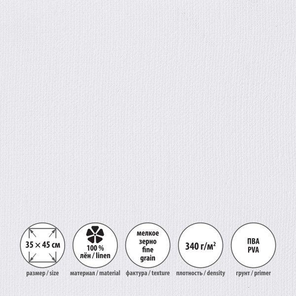 Холст грунтованный на подрамнике "Ученический" Не предназначен для профессиональных художников. Могут присутствовать дефекты грунтового покрытия . Не является браком. Холст грунтованный на подрамнике изготавливается из 100\% льна. Льняные ткани обладают прочностью и стойкостью к воздействиям влаги и температуры, что гарантирует долговечность изделия. Благодаря ручной обработке льняного материала волокна ткани не теряют своей формы, сохраняется своеобразие зернистости холста, имеющее большое значение для живописи. Мелкозернистый холст идеально подходит для прорисовки деталей, портретной живописи. Холст - это идеальная основа для художественного творчества. При изготовлении ПВА-эмульсии для холстов соблюдено оптимальное соотношение поливинилацетатного связующего и пигмента-наполнителя - белил: пигмент-наполнитель в составе эмульсии обеспечивает процесс адгезии, обусловленный свойством его маслоемкости , а ПВА связующее и желатиновая пропитка не дает "вытянутому" из красочного слоя маслу пропитать тканевое полотно холста, предотвращая его преждевременное разрушение. Подходит для живописи масляными и акриловыми красками. Материал - 100\% лён Основа грунта - ПВА Фактура - мелкое зерно Плотность - 340 г/м2 Толщина подрамника: 1.8 х 3 см. Размерный ряд: от 18 х 24 см до 100 х 120 см. Срок годности не ограничен.