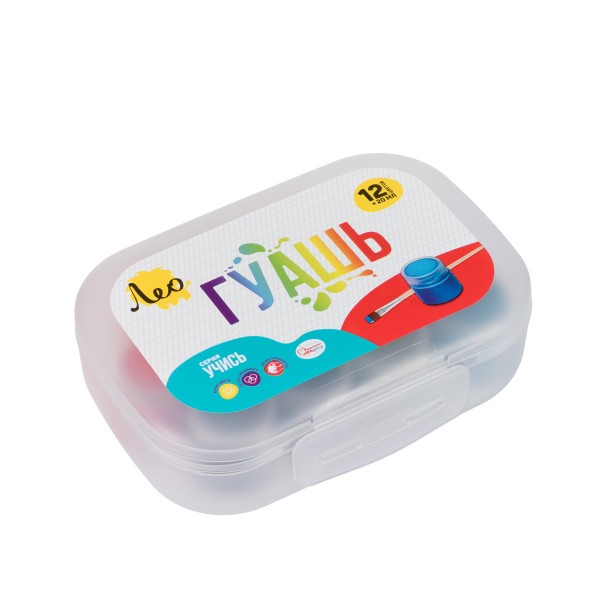 Краска гуашь "Лео" "Учись" набор в пластиковой упаковке LNGB-12 12 цв. х 20 мл в пластиковом контейнере