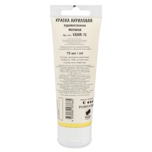 Краска акриловая "VISTA-ARTISTA" Studio матовая VAAM -75 75 мл 204 Лимонная