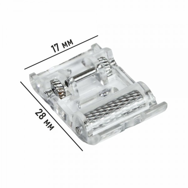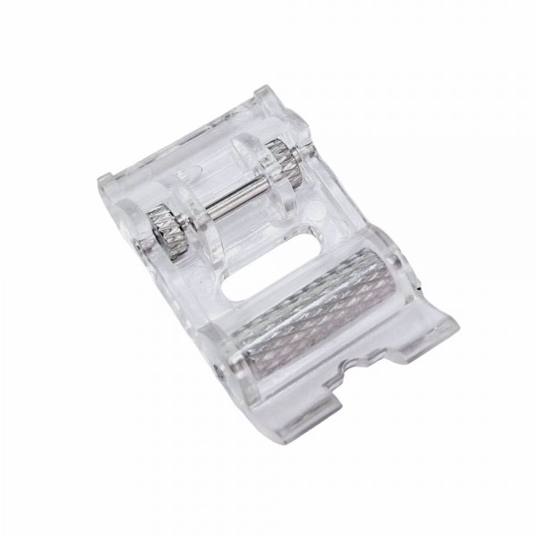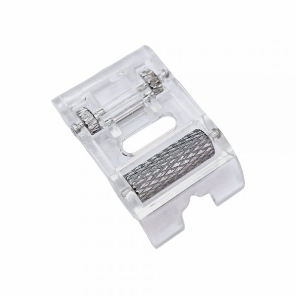 Лапка роликовая- названиешвейной лапкипредполагает наличие роликов. которые легко передвигаются сверху по материалу. что позволяет легко и качественно продвигать зубьям транспортера "липкие" ткани (кожа. винил. замш и другие.) Лапка с роликами великолепно подходит для шитья толстых тканей. ролики легко передвигаются между лапкой и зубьями транспортера. позволяя беспрепятственно проходить через слои различной плотности. Лапка подходит для работы со всеми видами строчек (прямая. зигзаг и декоративные швы.) Простая и удобная в установке.
