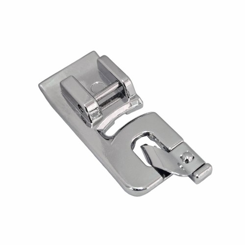 С помощьюлапки-подрубателя можно легко. быстро и красиво обработаете открытый край изделия. Её используют для шитья узких подвёрнутых швов на скатертях. шторах и т.д. В конструкции лапки есть закручивающий механизм подачи ткани сверху называемый "улитка" и прямое отверстие на оборотной стороне. которые отвечают за ширину подрубки края (4 мм). Эту лапку можно использовать для различных видов тканей.