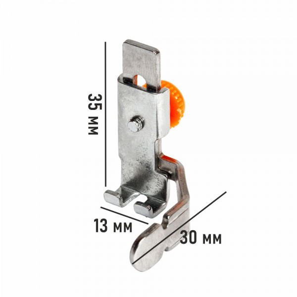При вшивании молнии образуется утолщение. при котором стандартная лапка перекашивается. Эта лапка для молнии. в отличии от стандартной. плотно прижимает молнию к материалу. что облегчает процесс втачивания. С помощью этой лапки можно вшивать молнию с любой стороны. Край лапки направляет молнию. для правильного расположения. Она может применяться и в качестве лапки для канта. для пришивания более толстой выпушки. включая большие шнуры. Устанавливается без адаптера.