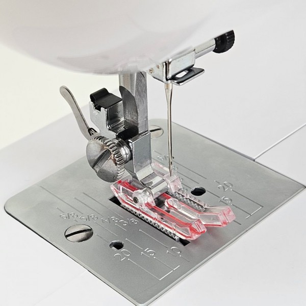 Лапка для бытовых швейных машин предназначена для квилтинга. Направляющая лапка поможет легко сопоставить рисунки границ с красными линиями. Вертикальные линии предназначены для обеспечения идеального расстояния между строками. Ширина крепления 6 мм.