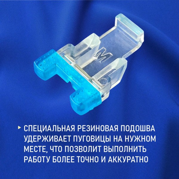 Лапка для пришивания пуговиц на бытовых швейных машинах. Специальная резиновая подошва удерживает пуговицы на нужном месте. что позволяет выполнять работу точно и аккуратно.