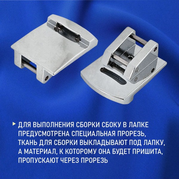 Лапка для присбаривания на бытовых швейных машинах. С ее помощью делается мягкая сборка легких и средних тканей с одновременным сшиванием деталей.