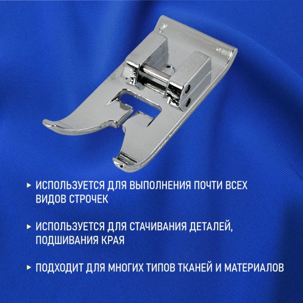 Лапка используется для стачивания деталей. подшивания края. Подходит для многих типов тканей и материалов.