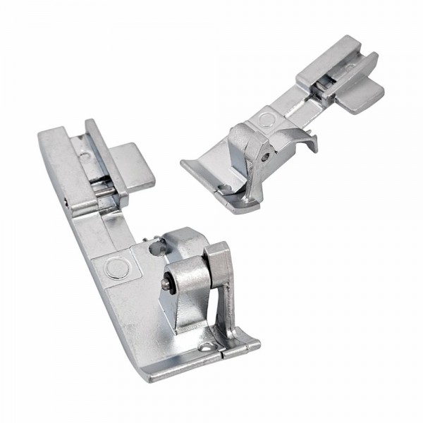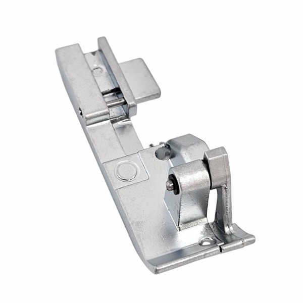 Лапка для оверлоков равномерно прижимает транспортируемую ткань. плотно придавливая ее к зубцам гребенки. Конструкция лапки предусматривает быструю установку и съем посредством адаптерного крепления. Лапка составная. спереди добавлена подвижная часть на шарнире.