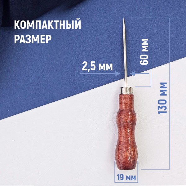 Шило с деревянной ручкой — прекрасный инструмент для пробивания отверстий и нанесения отметок на различные материалы. Оно имеет универсальное назначение и удобно в использовании благодаря своей эргономичной форме и острому жалу. Шило универсальное подходит для шитья. рукоделия. канцелярских работ. а также для ремонта обуви.