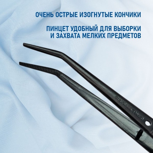Легкий удобный в работе пинцет используется в шитье для заправки нитей в оверлоки. швейные или вышивальные машины. В работе пинцет легко захватывает нити. мелкие детали. бусины. бисер. поможет заправить нить в оверлоке. Пинцет для творчества незаменим для любителей рукоделия. моделирования. декорирования. квиллинга. декупажа. алмазной вышивки и работы в технике канзаши. Пинцет удобно лежит в руке. не скользит. Концы пинцета. при нажатии. плотно прилегают друг к другу. Отсутствие щелей позволяет использовать инструмент для захвата самых мелких деталей.