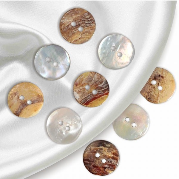 Пуговицы ракушки изготовлены из натурального природного и экологичного материала. Перламутровые пуговицы ракушки обладают самобытным внешним видом и практичностью. Ракушечные пуговицы подойдут для разных стилей одежды. от строгого делового до креативного бохо. Натуральную ракушку ценят за перламутровый блеск и изящные узоры. которые создала сама природа. Могут иметь различный цвет и фактуру. что не является браком.
