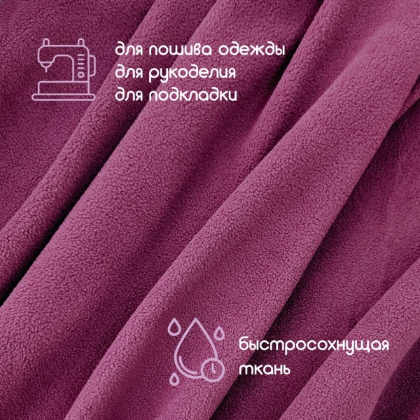 Флис двухсторонний антипиллинг "SENTEX" (ФАСОВКА 50*50см) 230 г/м2 100% ПЭ пурпурный