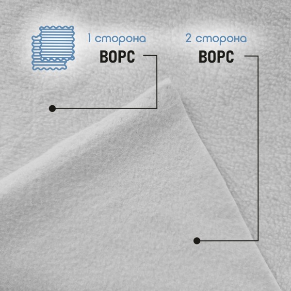 Флис двухсторонний антипиллинг "SENTEX" (ФАСОВКА 50*50см) 230 г/м2 100% ПЭ серебро
