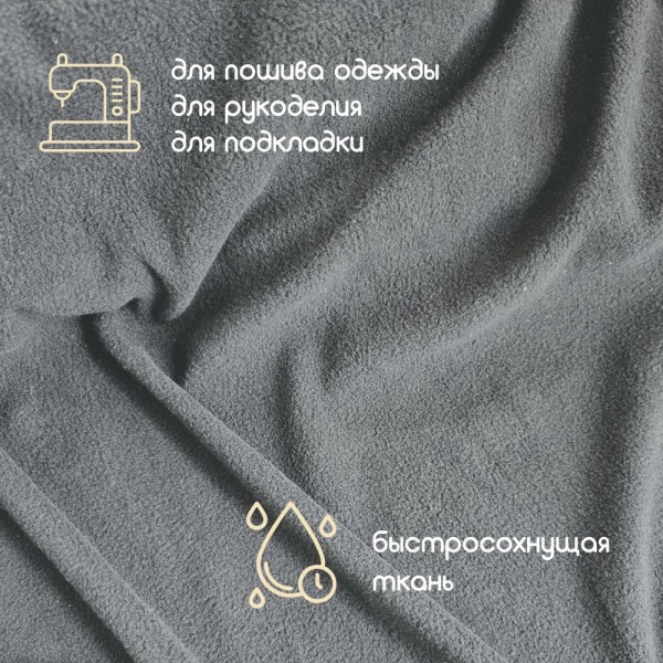 Флис двухсторонний антипиллинг "SENTEX" (ФАСОВКА 50*50см) 230 г/м2 100% ПЭ серый