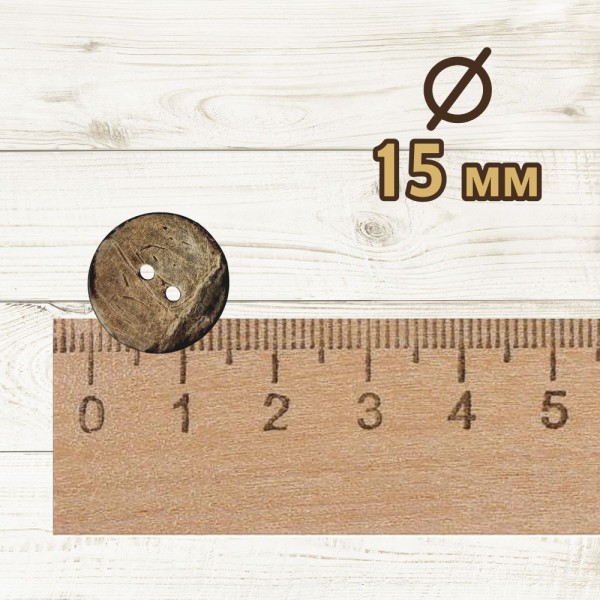 Пуговица кокос (2 прокола) арт. COC1. L24 - 15 мм (уп. 10 шт)