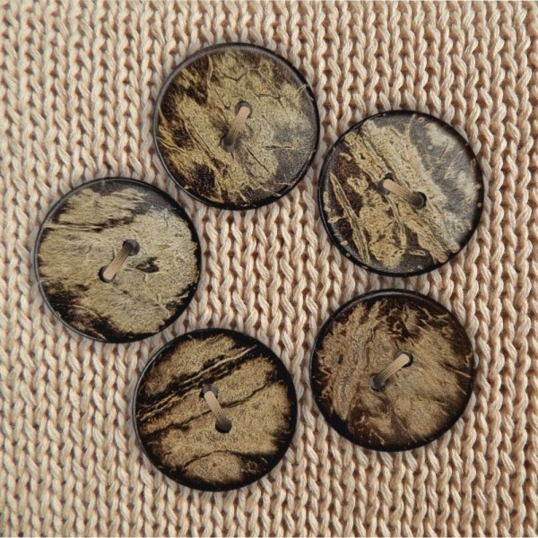 Пуговицы из натурального кокоса хорошо отшлифованы и приятны на ощупь. Кокосовые пуговицы уникальны и каждая имеет свой неповторимый узор. Самые универсальные из натуральных. двусторонние. Как правило. одна сторона кокосовых пуговиц светлая. а другая темная. Кокосовые декоративные пуговицы подходят для любой одежды. Так же натуральные кокосовые пуговицы могут применяться в декорировании предметов домашнего интерьера и рукоделии.