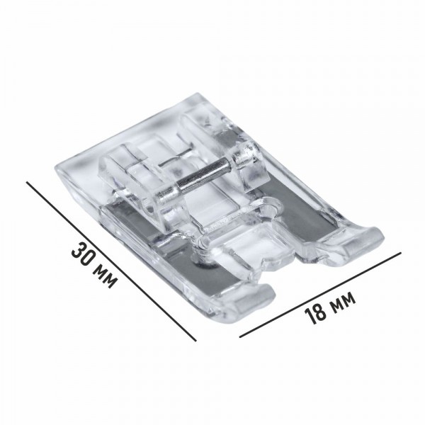 Лапка для сатиновых строчекпредназначается для работы с декоративными или сатиновыми стежками. Подошва лапки немного скошена для более мягкой подачи нитей. Лапка сделана из прозрачного пластика. что позволяет точно контролировать процесс шитья. Универсальное быстросъемное крепление лапки позволяет использовать ее на большинстве современных бытовых швейных машин.