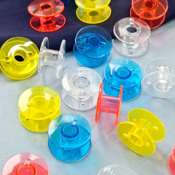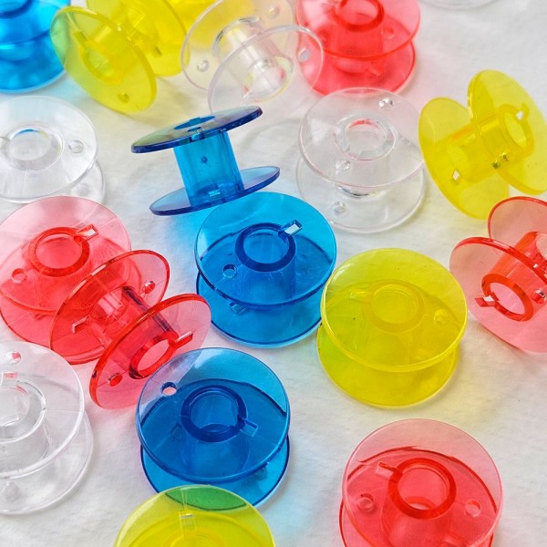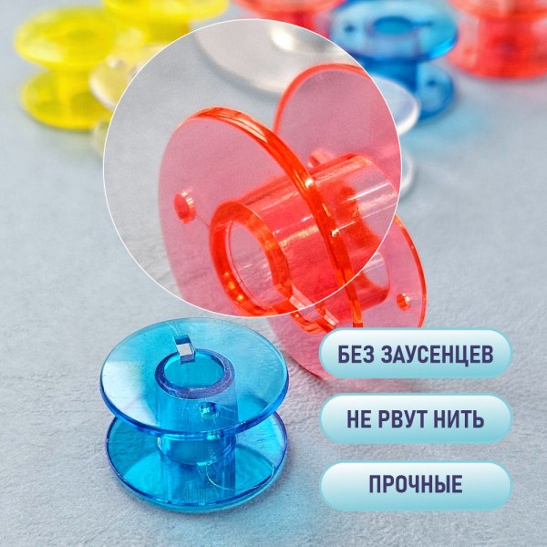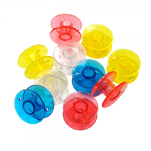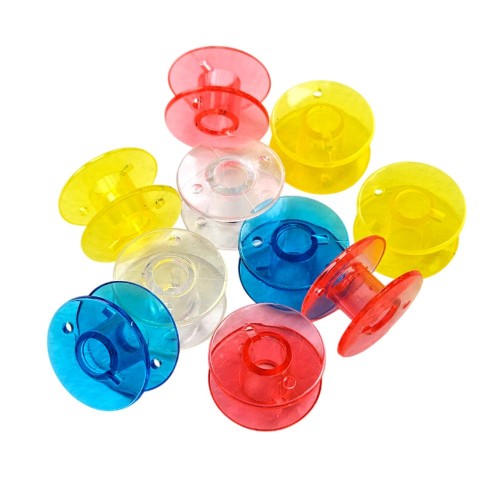 Набор прозрачных шпулек для бытовых швейных машин. Шпульки пластиковые представляют собой маленькую катушку для намотки нижней нити. Вставляются в шпульный колпачок в челночном устройстве. Они универсальные и подходят для машин с вертикальным и горизонтальным челноком. С их помощью вы сможете создавать красивые и качественные изделия.