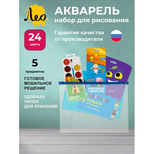 Лео" набор для творчества акварель 2 (5 предметов, 24 цвета) 5 пред. LNZIP-02 ( в конверте ) .