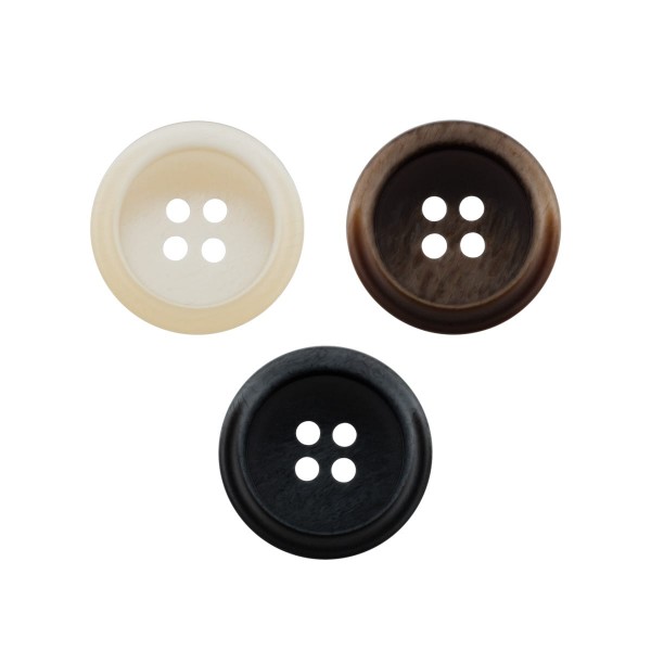Пластиковая пуговица костюмная ТМ "BLITZ",артикул: DRN 0083 круглая на четыре прокола, диаметром 20 мм.