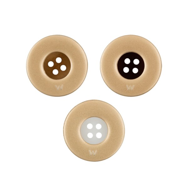 Пластиковая пуговица костюмная ТМ "BLITZ",артикул: DRN 0087 круглая на четыре прокола, диаметром 25 мм.