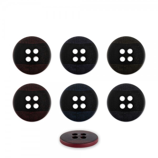Пластиковая пуговица костюмная ТМ "Gamma", артикул: CRZ 0026 круглая на четыре прокола, диаметром 15 мм.