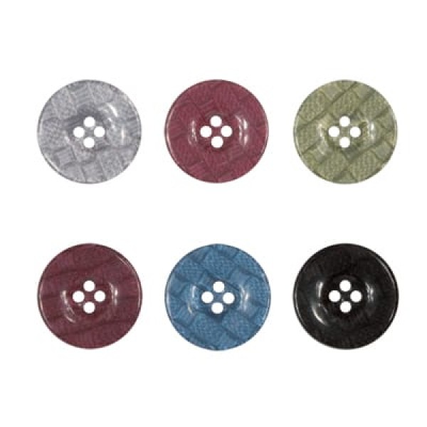 Пластиковая пуговица костюмная ТМ "Gamma", артикул: EL 0025 круглая на два прокола, диаметром 16 мм.